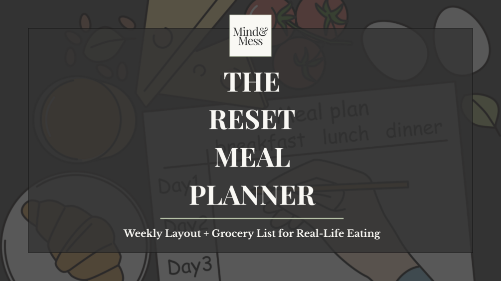 A calming, printer-friendly dark version of the weekly meal planner with a built-in grocery list — made for real-life eating.